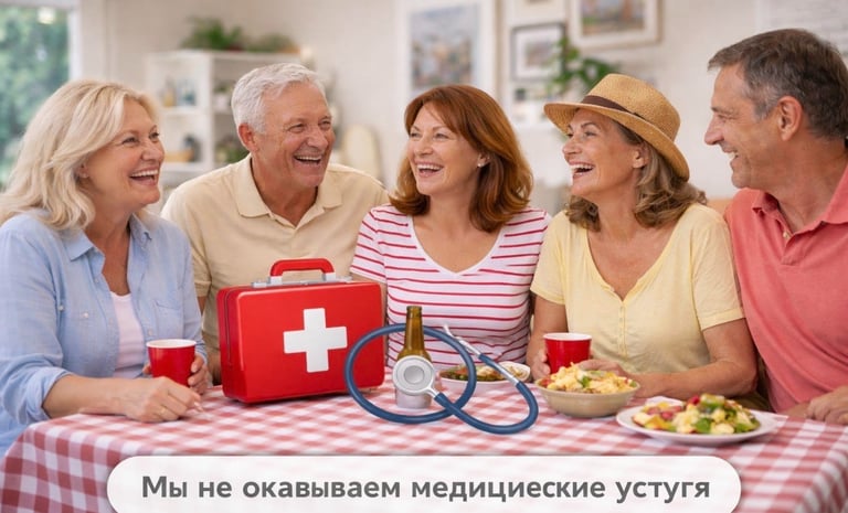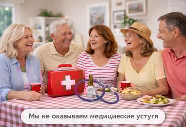 Мы не оказываем медицинские услуги. Мы не осуществляем уход или присмотр. Мы не контролируем приём лекарств. Участники посещают клуб самостоятельно и несут личную ответственность за своё состояние.