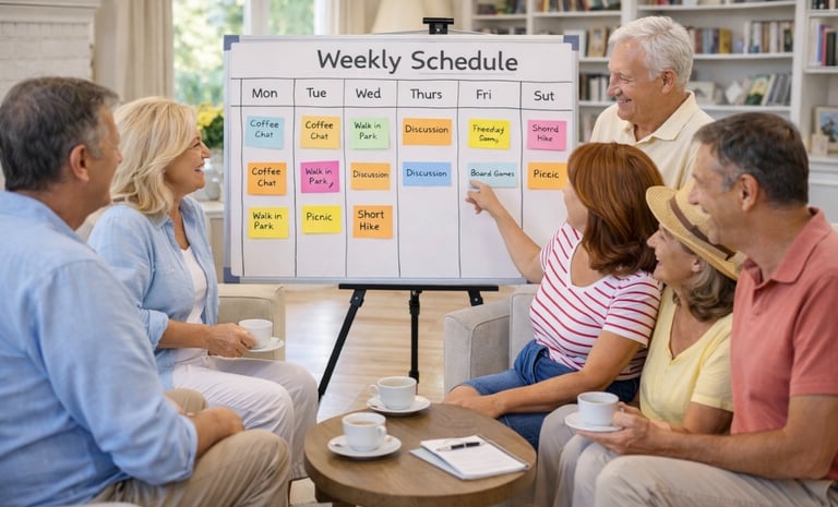 общение за кружкой чая, танцы, настольные игры, творческие мастер-классы, пикники